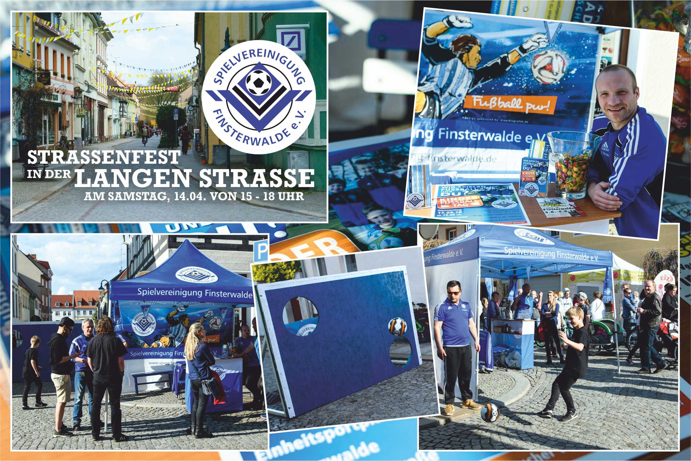- um sich zu präsentieren und Interessierte zum Fußball zu locken, war die Spielvereinigung im März, beim Straßenfest, in der Langen Straße mit einem Stand vertreten - Besucher, ob jung oder alt, konnten sich z.B. beim Torwandschießen ausprobieren