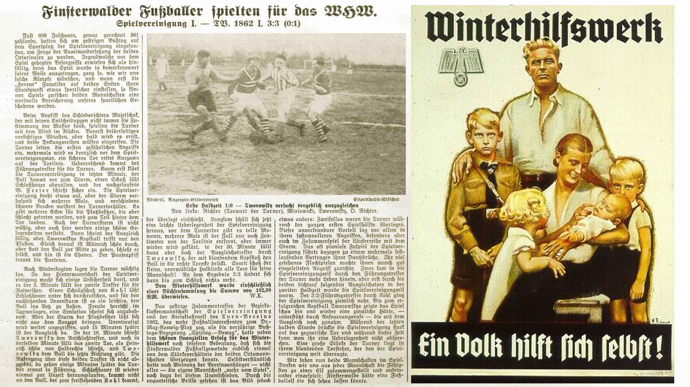 im November 1937, führten die Spielvereinigung und das Kreisklassenteam des Finsterwalder Turnvereins 1862, für das Winterhilfswerk, ein Benefiz-Spiel durch