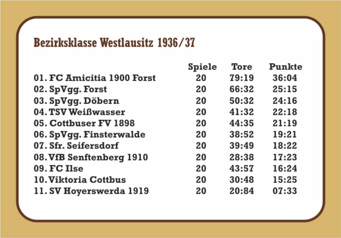 die Saison 1936/37 brachte die Männern der Spielvereinigung wieder auf den 6. Rang der Bezirksklasse Westlausitz, aber keine sportliche Weiterentwicklung - zu viele Punkte wurden verschenkt
