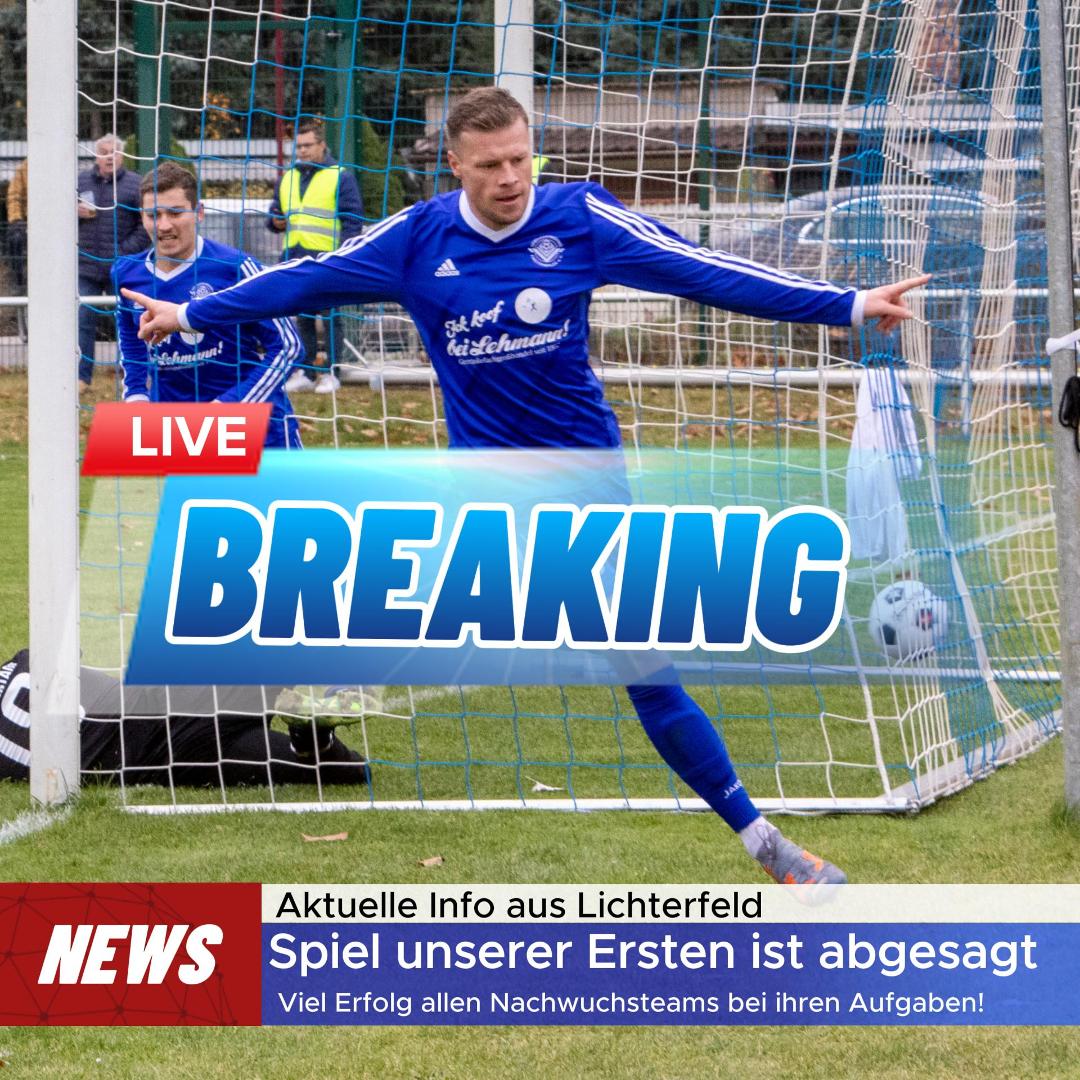 Das morgige Spiel unserer Ersten in Lichterfeld ist soeben abgesagt worden. Allen Nachwuchsteams viel Erfolg! Die Ansetzungen in der Übersicht findet ihr wie gewohnt weiter unten.