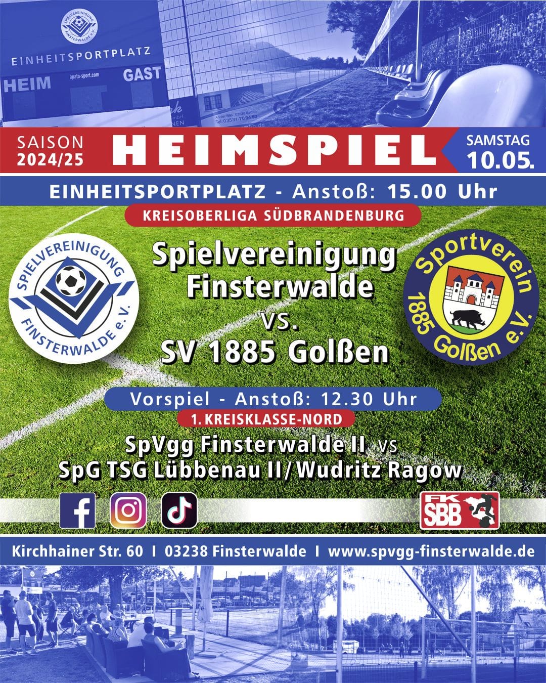 - 15 Uhr: Im Anschluss trifft unsere Erste auf den SV 1885 Golßen. Ein wichtiges Spiel, bei dem es um wertvolle Punkte für den Treppchenplatz in der Südbrandenburgliga geht. Unsere Männer sind hochmotiviert, vor heimischem Publikum zu glänzen.