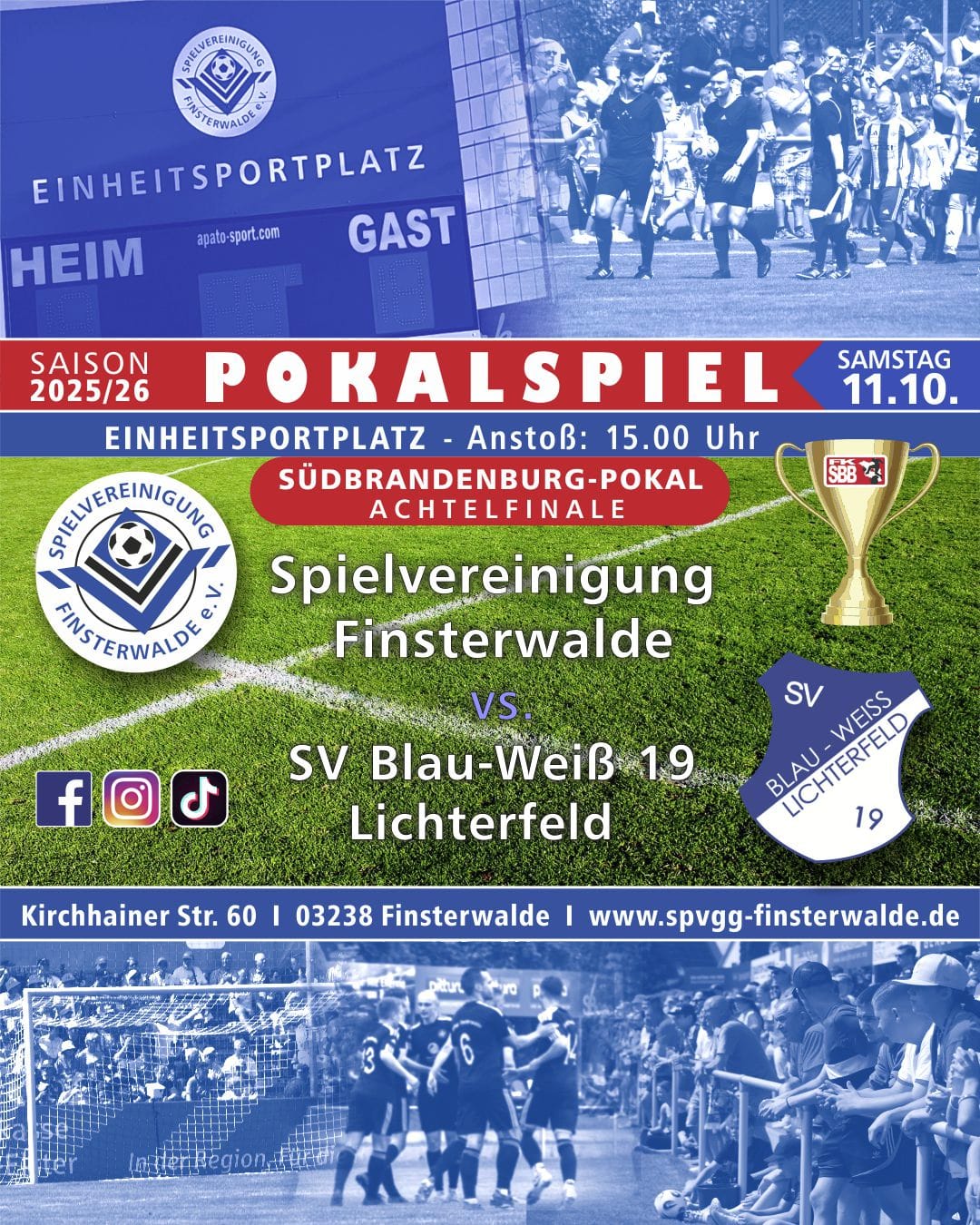 Mit einem Altersdurchschnitt von nur 23 Jahren geht unsere Erste in das anstehende Südbrandenburg-Pokal-Achtelfinale gegen Lichterfeld. Nach dem 3:1-Ligasieg gegen die Blau-Weißen ist der Rückenwind deutlich spürbar – und der Glaube an den nächsten Coup groß!