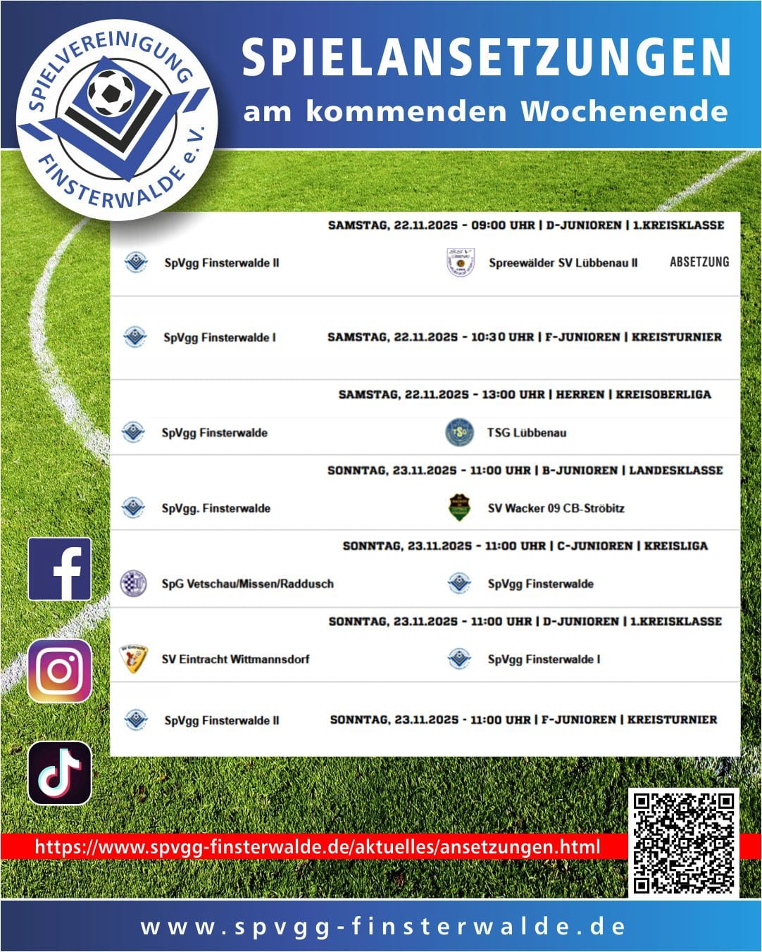 Unsere Zweete darf verschnaufen, unsere Blau-Weißen Talente sind derweil wieder im Einsatz – alle Ansetzungen findet ihr in der Grafik! Wir freuen uns auf euch!