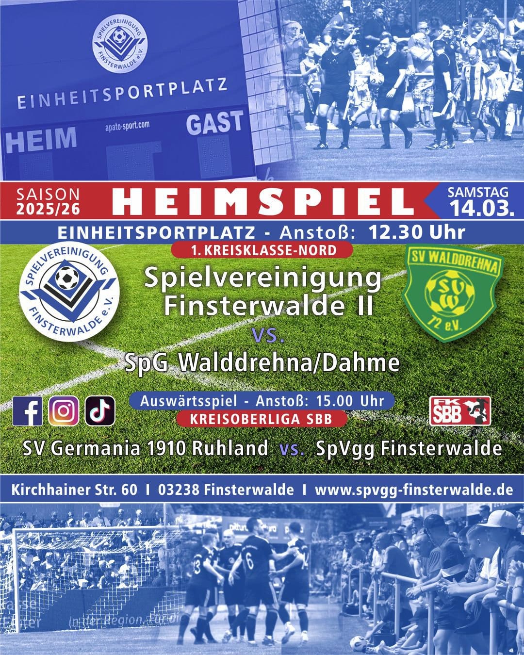 Am Nachmittag ist dann unsere Erste auswärts im Einsatz. Anstoß bei der Germania in Ruhland ist am Samstag um 15 Uhr.