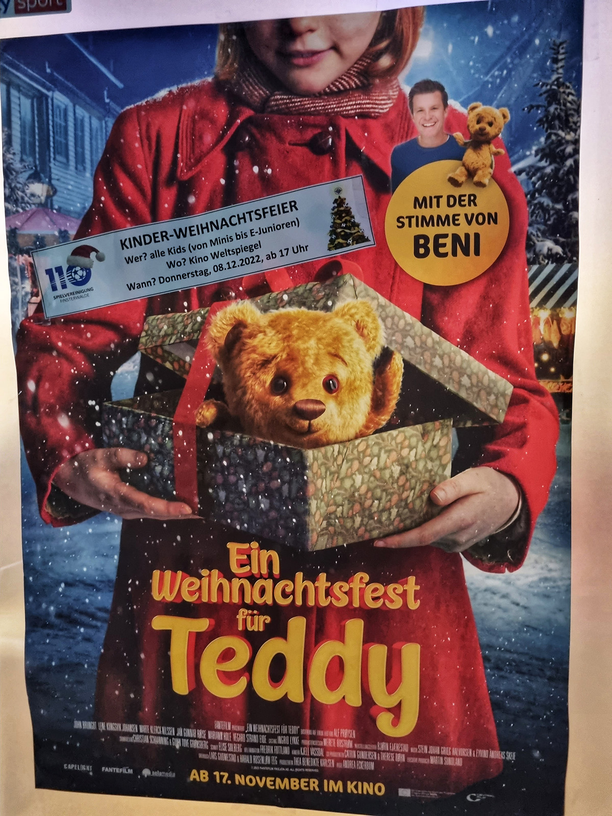 Mittendrin zwischen dem 2. und 3. Advent und endlich wieder nach einer schmerzhaften coronabedingten Zwangspause fiebern wir in der neuen Woche unserer Kinderweihnachtsfeier entgegen. 120 Kids von den Minis bis zu den E-Junioren dürfen sich dank der erfahrenen Cineasten um Familie Siegert auf einen brandneuen weihnachtlichen Leckerbissen im Weltspiegel Kino Finsterwalde freuen.