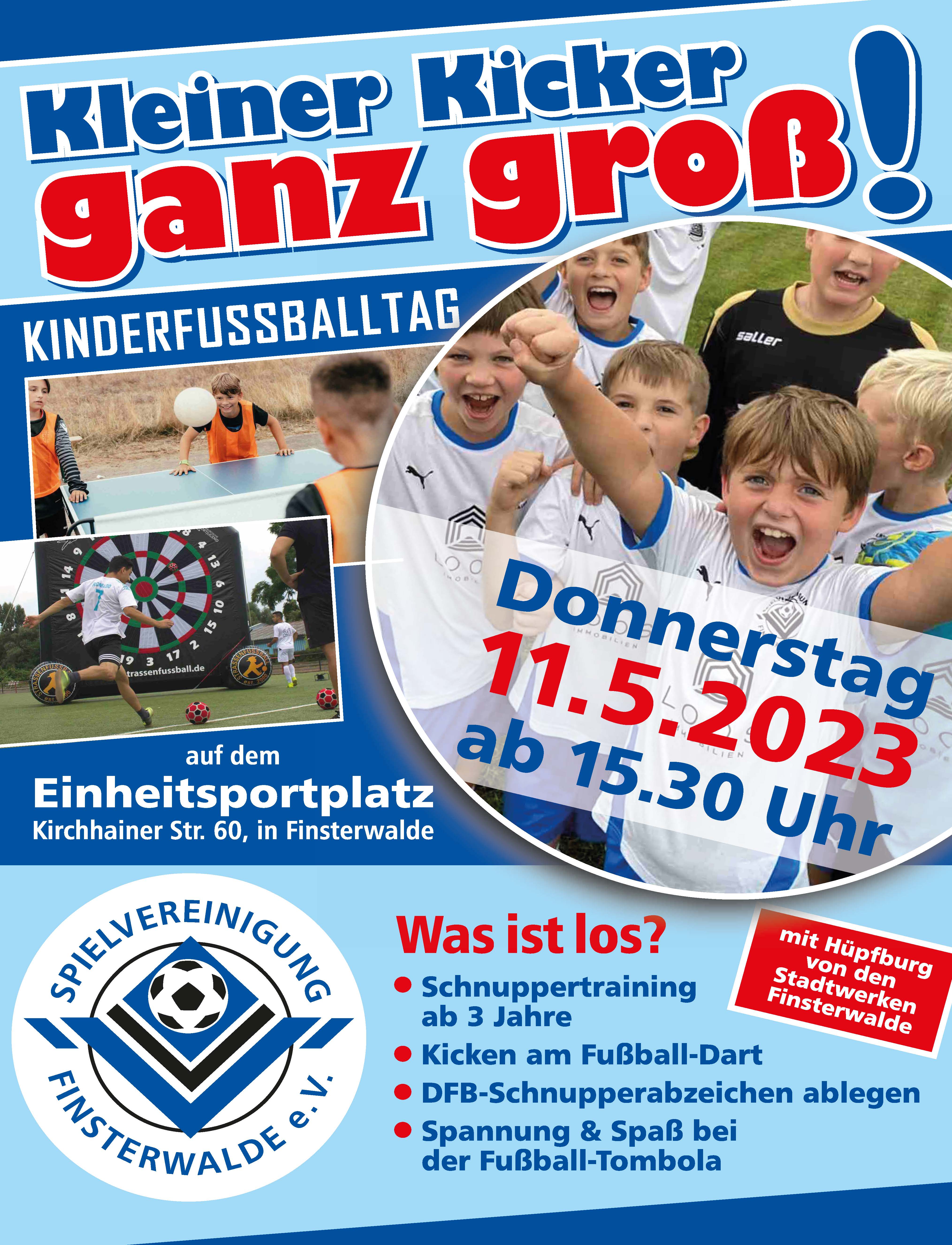 Damit nicht genug, erwartet die Nachwuchssterne eine super Fußballtombola, Fußball-Dart sowie Spaß auf der Hüpfburg der Stadtwerke Finsterwalde.