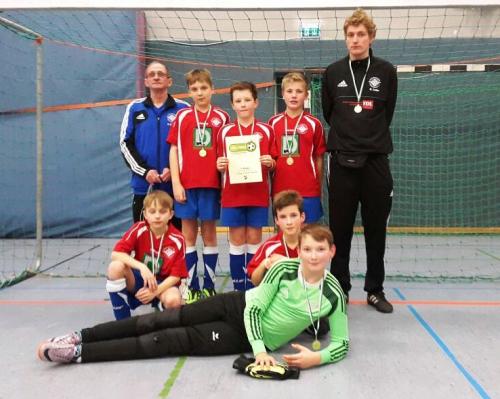 Am letzten Januarwochenende gelang unserer Mannschaft in Schipkau, sich den Siegerpokal zu holen. Dies sollte sich dann in Kolkwitz wiederholen. Im ersten Spiel wurde SG Sielow mit 2:0 bezwungen. Gegen die SG Burg kam man nur zu einem 2:2. Nach zwei Erfolgen (1:0 gegen Eisenhüttenstadt und 2:1 gegen Großräschen) musste man im letzten Spiel gegen SV Hertha Finsterwalde gewinnen. Dies gelang unserer Mannschaft eindrucksvoll . Justin erzielte das wichtige 1:0. So blieb es bis zum Ende. Da Tobias wegen Atembeschwerden schon nach dem ersten Spiel passen musste, und wir ohne Auswechsler auskommen mussten, ist der Erfolg noch höher einzuschätzen. Ben und Justin waren mit je vier Toren am Erfolg beteiligt. Auch Hendrik spielte ein gutes Turnier. Die Trainer hoffen, dass die erkrankten und verletzten Spieler schnell wieder zur Mannschaft stoßen.