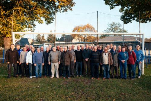 Die Resonanz für dieses Treffen war erstaunlich und so konnte der Vereinsvorsitzende Sebastian Schulz schließlich 35 Sportkameraden mit freundlichen Worten auf der „Einheit“ begrüßen. Anschließend begab man sich auf den Rasen; aber nicht zum Fußballvergleich, sondern für ein gemeinsames Gruppenfoto.
