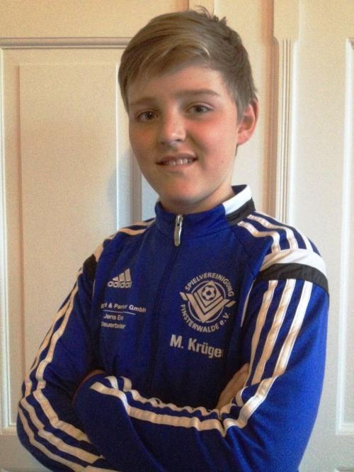 "Moritz Krüger spielt mit den E-Junioren der SpVgg Finsterwalde eine tolle Saison. Der 10-Jährige ist Kapitän und Torwart der Elf, die aktuell Platz zwei in der südbrandenburgischen Kreisliga belegt. Bisher erzielten die Kicker stolze 135:7 Tore. Da Moritz Krüger im Kasten nicht immer viel zu tun hat, wollte er sich am Wochenende gegen Uebigau unbedingt mal als Feldspieler versuchen. Und wie! Bei dem 13:1-Sieg konnte sich der 10-Jährige als sechsfacher Torschütze auszeichnen." Quelle: www.lr-online.de