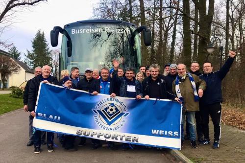 Die 1. Mannschaft fährt gemeinsam mit ihren Fans zum Auswärtsspiel nach Lübbenau. Möchtest DU auch dabei sein, dann melde dich in der Vereinsgaststätte an. Blau-Weiß!!!