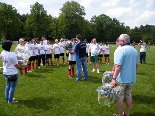 Am 06.06.2010 fand in Sallgast das letzte Punktspiel der Damen zwischen der SG SpVgg Finsterwalde/FC Rot-Weiß Sallgast und dem FSV Grün-Weiß Schwarzheide statt. Wer hätte im Vorfeld gedacht, dass dieses Spiel die Meisterschaft entscheidet? Vor einer stattlichen Zuschauerkulisse war es kurz vor Spielende Lisa Weidemann, die mit ihrem Treffer zum 1:0 den Sieg und den Traum von der Meisterschaft perfekt machte. Bei 15 Siegen und nur einer Niederlage und bei einem Torverhältnis von 72:14 ist der Titel mehr als verdient. Die erfolgreichsten Torschützinnen sind Nancy Margraf (19) vor Maria Schaefer (14) und Sabine Freiwald (11). Einziger Wehmutstropfen an diesem Tag war die Verabschiedung vom Mannschaftskapitän Ivonne Hänsch, der wir natürlich weiterhin alles Gute wünschen und Danke sagen. Großer Dank gilt auch dem Trainergespann Pierre Dümke und Thilo Jaura.