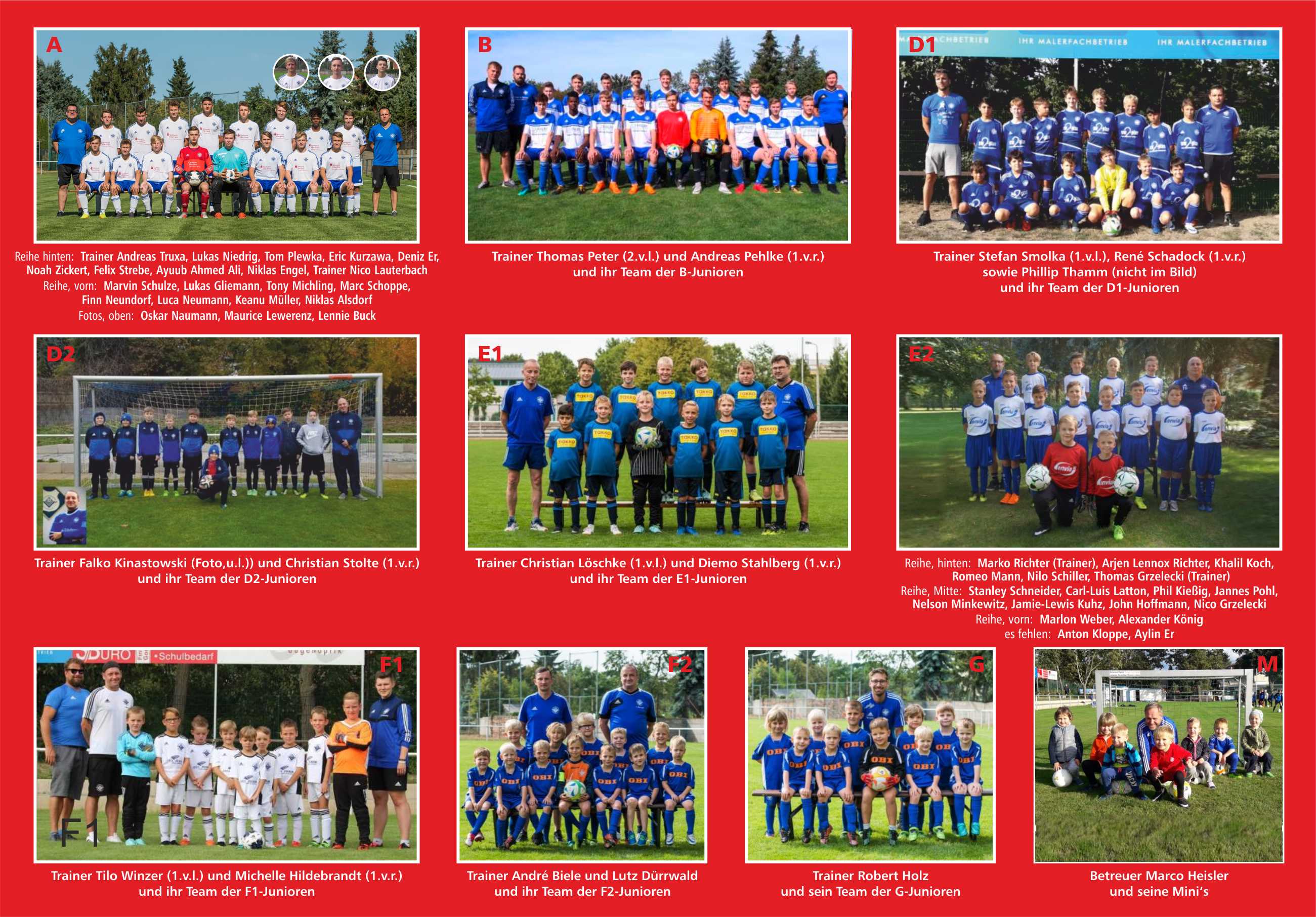 die B-Junioren (Trainer A. Truxa) erkämpften sich in einer schweren Saison den 9. Platz in der Landesklasse Süd, im Pokal mussten sie erst in der 3. Runde gegen SV Babelsberg 03 (U17) mit 0:4 die Segel streichen - die „C“ (St. Höhne, Th. Peter, A. Reimschüssel), Kreisliga Staffel A, Platz 2 - die „D“ (R. Schadock, P. Thamm), 1. Kreisklasse Staffel B, Platz 5 - die „E1“ (F. Söldner, Ch. Stolte), 1. Kreisklasse Staffel B, Platz 8 - die „E2“ (S. Schulz, Th. Oepen), 1. Kreisklasse Staffel E, Platz 7 - die „F1“ (M. Richter, S. Schwarzkopf), 1. Kreisliga Staffel B, Platz 1 (90 Tore in 10 Spielen der Endrunde!) - die „F2“ (T. Winzer, M. Hildebrandt), 1. Kreisklasse Staffel C, Platz 10 - die „G“ (R. Holz) spielte im Turnierbetrieb und D. Stahlberg kümmerte sich engagiert um die Mini's
