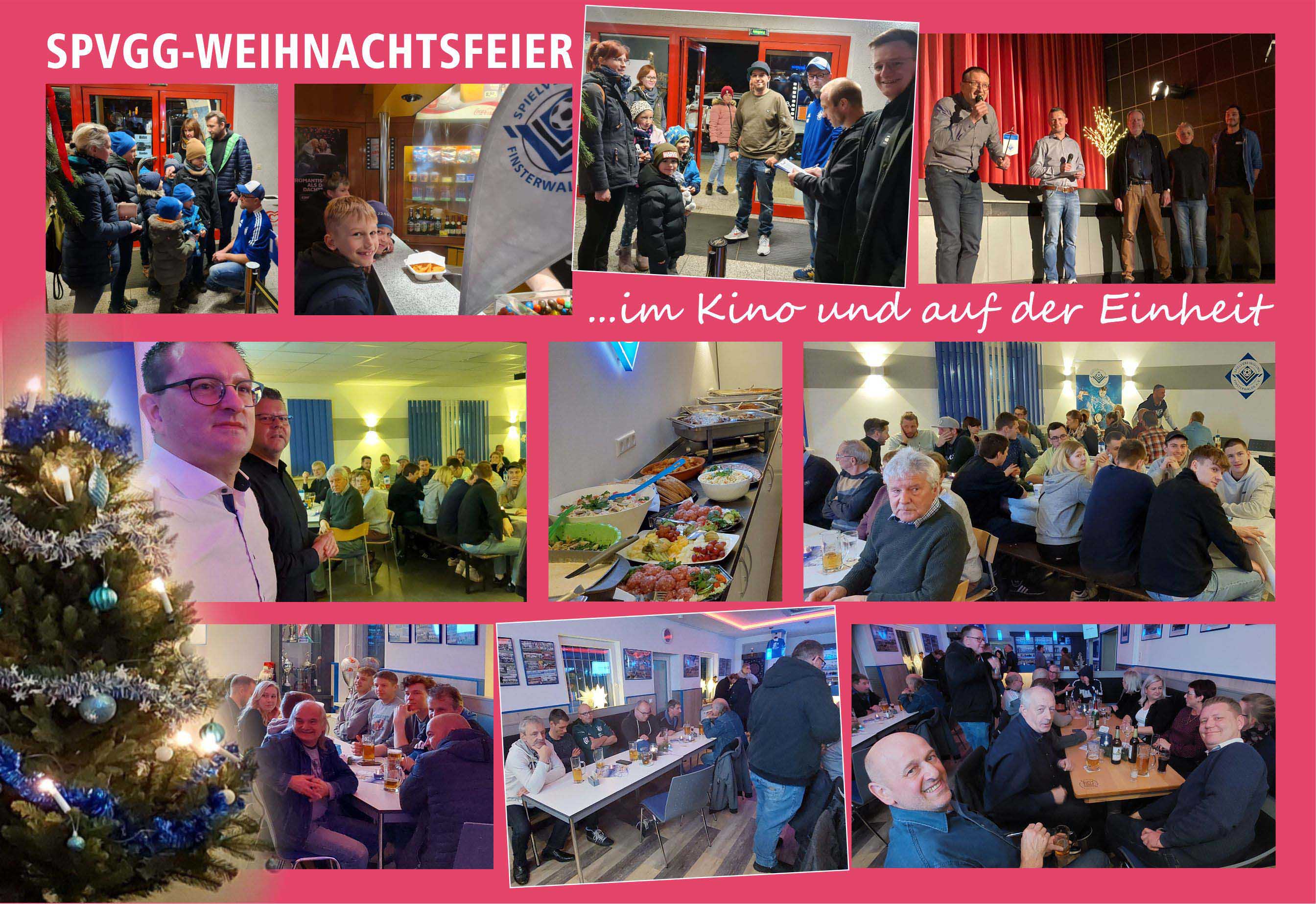 In der Vorweihnachtszeit gab wieder traditionelle Events für groß und klein. Die Nachwuchskicker hatten mit Ihren Eltern, Großeltern und Trainern viel Spaß im Kino "Weltspiegel". Die "Großen" kamen wieder in unsere Vereinsgaststätte zur Jahresabschlussfeier zusammen.