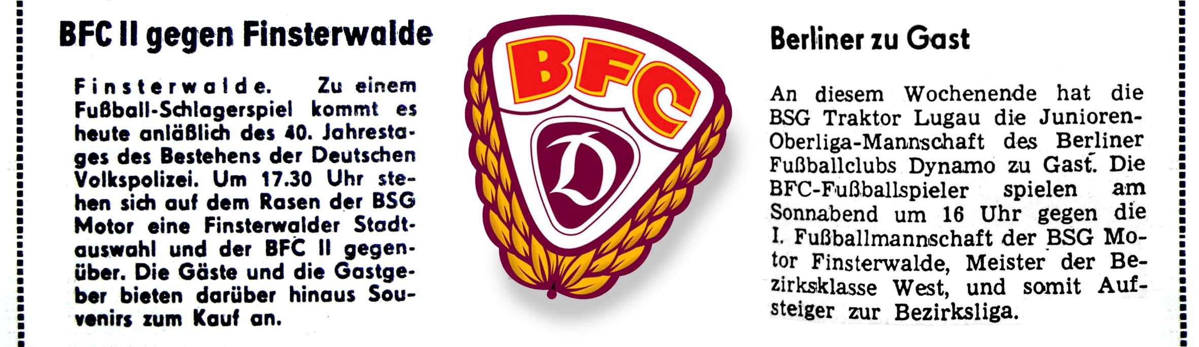 die Neuzugänge für die Bezirksligasaison 1985/86, Torsten Lehnert, der Bulgare Mintscho Katzarow (beide Lok Cottbus), Uwe Lademann (Chemie Annaburg/Torschützenkönig der vergangenen Bezirksklassesaison) und Dirk Stöhr (Dynamo Lübben), sollten das Team um Kalle Schädlich und seinem „Co“ Winni Schulz wettbewerbstauglich machen