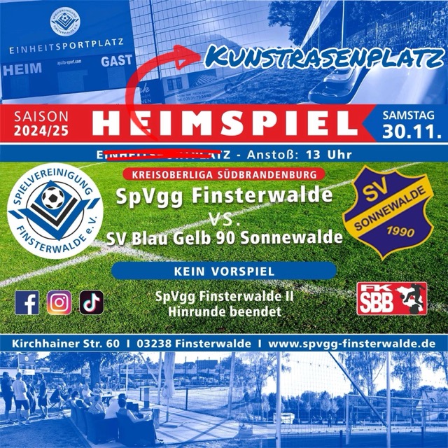 Es hat sich längst rumgesprochen, hier aber noch mal der wichtige Hinweis, dass die Partie auf dem Kunstrasenplatz im Stadion des Friedens ausgetragen wird. Anstoß ist am Samstag um 13 Uhr.