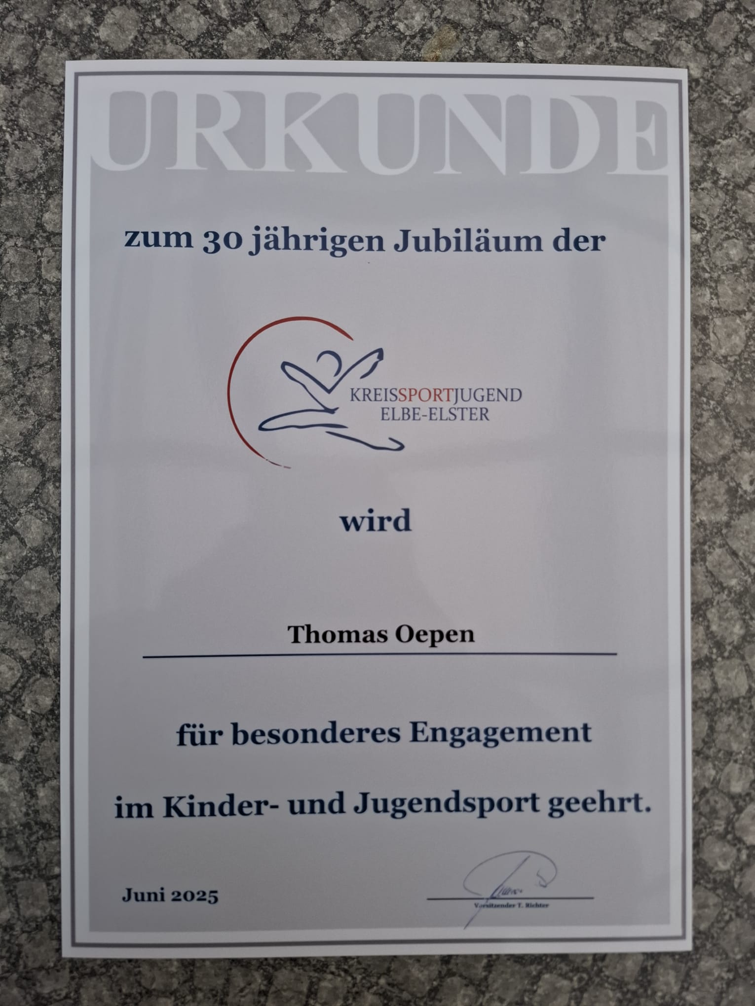 Mit großer Freude gratuliert die SpVgg Finsterwalde unserem Sportfreund Thomas Oepen zur verdienten Auszeichnung durch den Kreissportbund Elbe-Elster. Die Ehrung würdigt sein langjähriges, vorbildliches Engagement im Kinder- und Jugendsport – und wir als Verein können uns dieser Anerkennung nur anschließen.