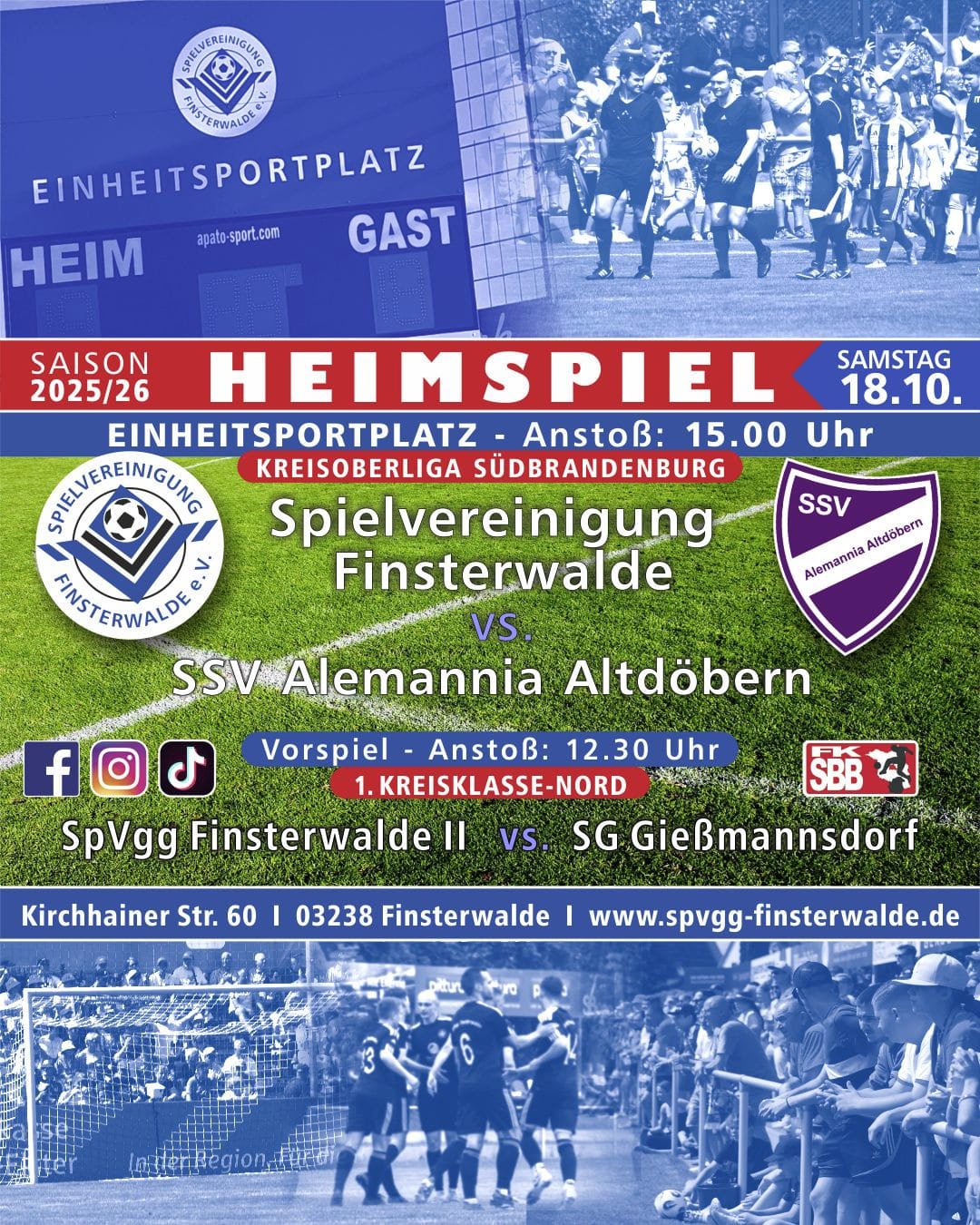 Heimspiel-Action gibt es bereits am Freitag ab 17 Uhr mit dem Duell unserer Altherren gegen die SpVgg. Blau-Weiß 90 Vetschau. Und auch unsere Nachwuchs-Stars sind ordentlich unterwegs.