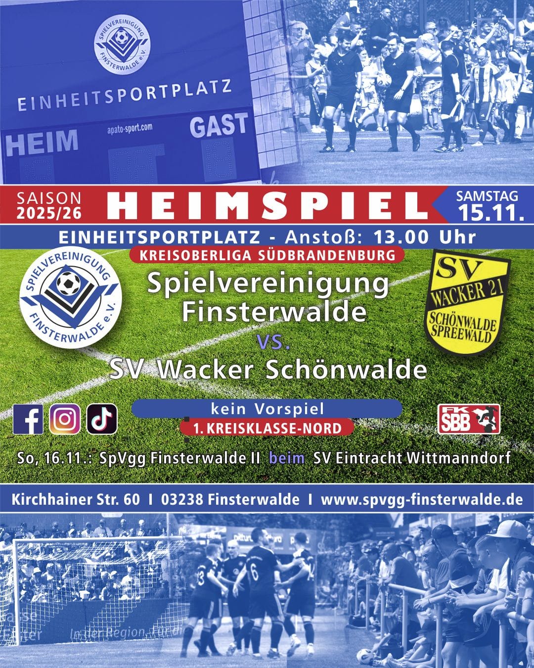 Topspiel in der Sängerstadt! Unsere Erste empfängt Wacker Schönwalde – ein Duell zweier Teams, die sich tabellarisch auf Augenhöhe begegnen. Unsere Kusno-Elf läuft mit ordentlich Rückenwind auf: 10 Punkte aus den letzten fünf Spielen und ein 7:0-Torfestival in Schipkau sprechen für sich.