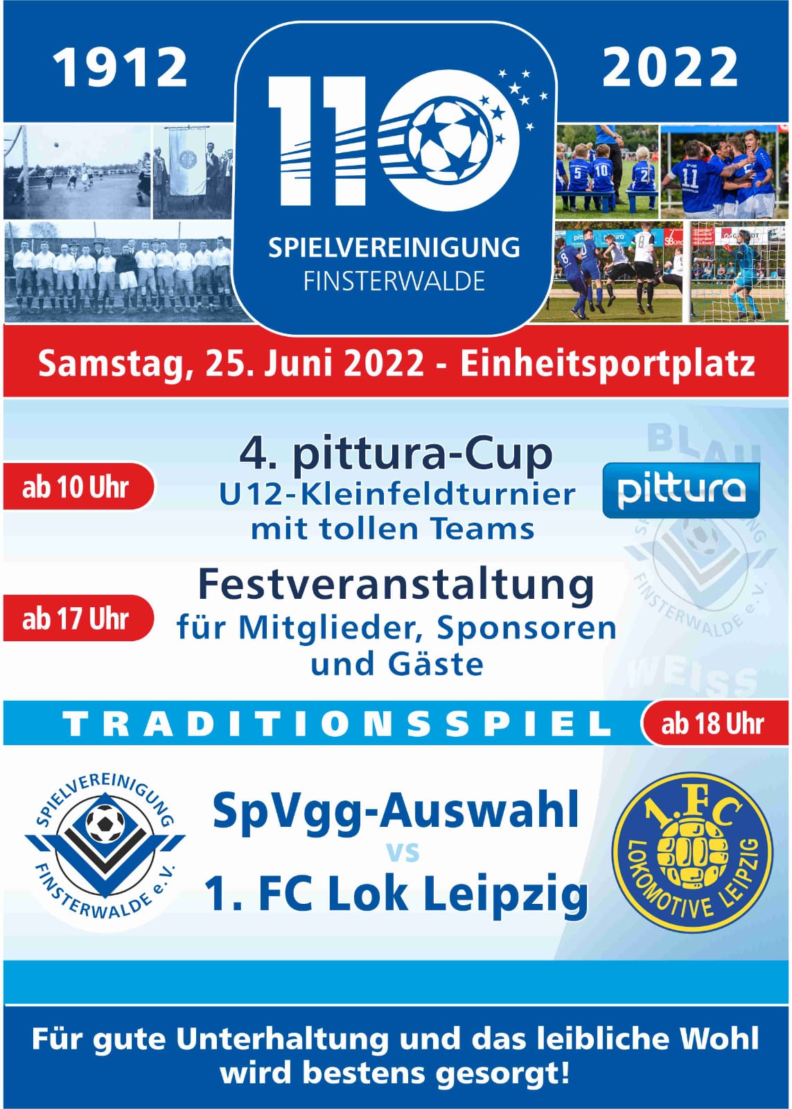 Liebe Blau-Weiße, ihr könnt euch nicht vorstellen, wie sehr wir unserem großen Vereinsjubiläum zu 110 Jahre Spielvereinigung Blau-Weiß Finsterwalde entgegen fiebern! Am Sonnabend, 25. Juni, steigt unser großer Festtag zum Geburtstag. Und na klar: Der wird sportlich!