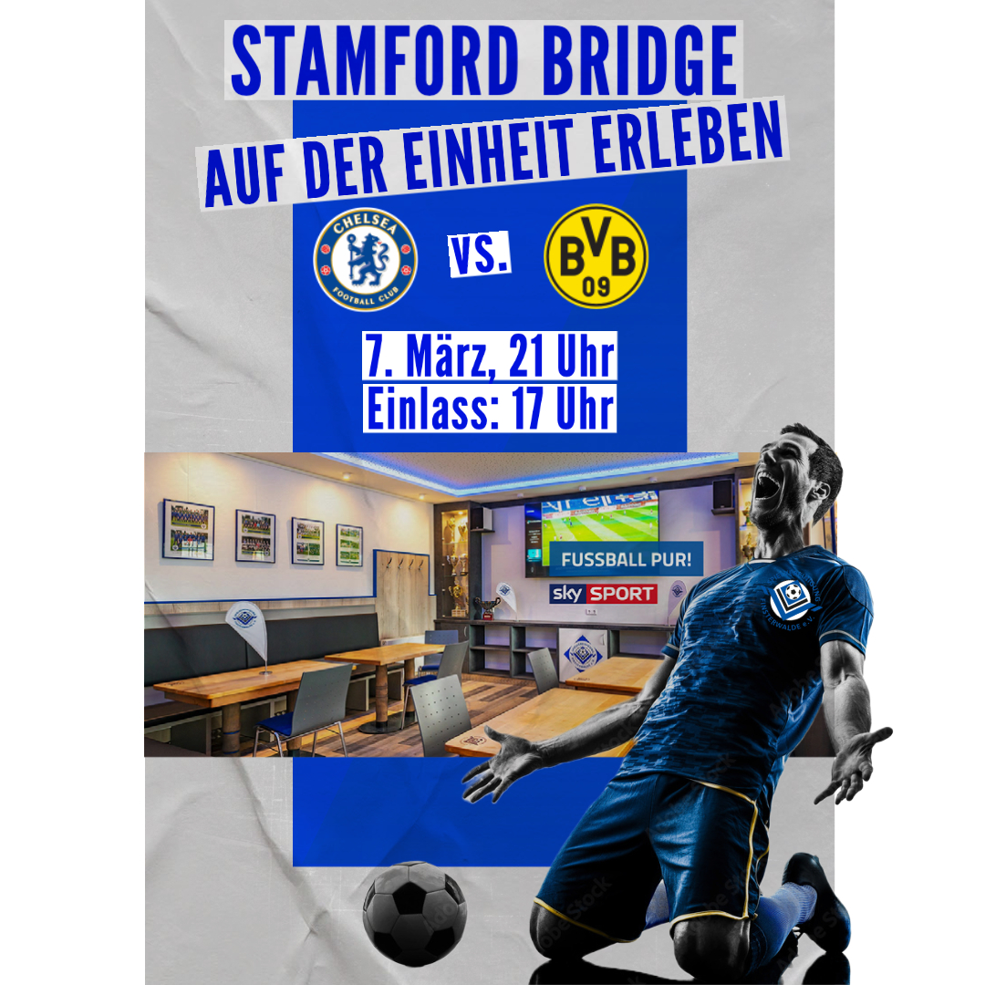 Spitzen-Fußball zur zur besten TV-Zeit seht Ihr am Dienstag, 7. März, auf unserer Einheit! Kommt vorbei und lasst uns das Achtelfinal-Rückspiel zwischen Chelsea und dem BVB bei besten Speisen und Getränken gemeinsam genießen! Anpfiff zu dem Champions League-Kracher ist um 21 Uhr. Die Kneipentür öffnet bereits um 17 Uhr.